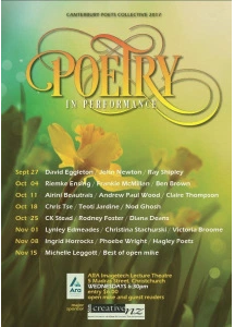 This Wednesday (tomorrow!) I've been invited to read at Canterbury Poet's Collective (CPC) alongside one of my favourite writers, Emma Neale, editor of Landfall (I might be name's dropping in my pant-pant excitement!), and local poet, Rodney Foster.